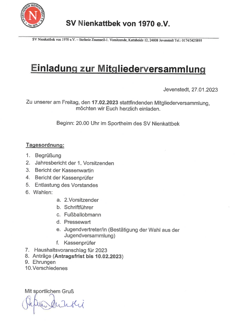 Jahreshaupt- versammlung Einladung zur Mitgliederversammlung am 17.02.2023 Teilen mit: Auf X teilen (Wird in neuem Fenster geöffnet) X Auf Facebook teilen (Wird in neuem Fenster geöffnet) Facebook Gefällt mir Wird geladen … Ähnliche Beiträge Hinterlasse einen Kommentar Antwort abbrechen Δ